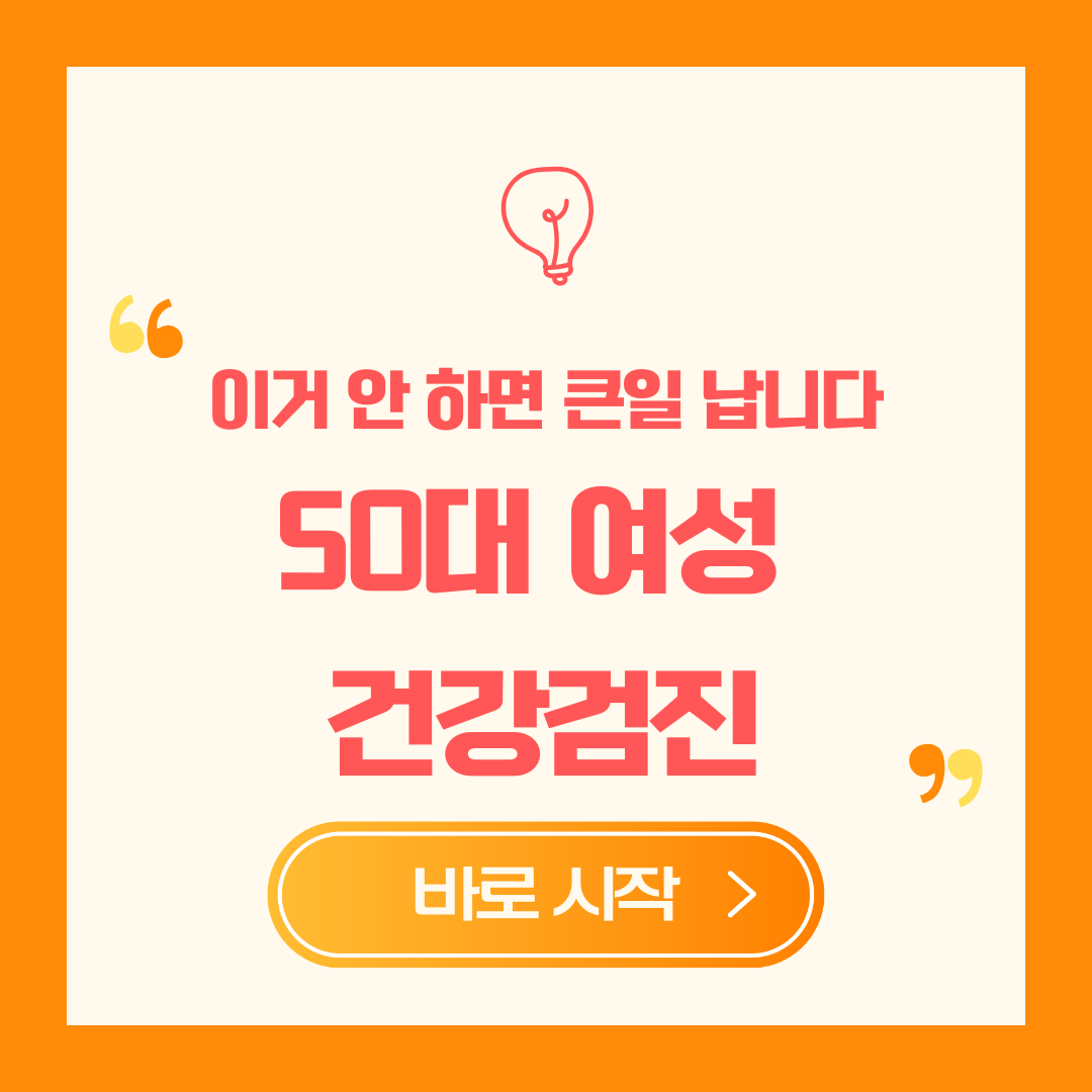 이 글에서는 50대 여성이라면 반드시 체크해야 할 건강검진 필수 항목 7가지와 병원 고르는 요령, 비용 아끼는 팁까지 모두 알려드립니다. 쉽고 간단하게 클릭만해도 건강검진 예약을 할 수 있게 해 드렸으니, 내 인생에 가장 소중한 '건강' 지금 바로 지키세요!